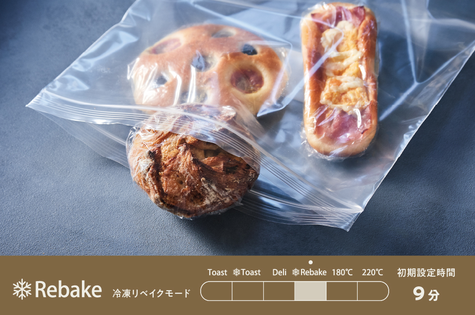 冷凍したパンの表面にもしっかり焼き色をつけながら、中までじっくり温められるので、焼き上がりはサクふわ。パン本来の食感がよみがえります。