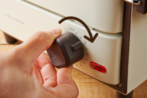 調理物にあわせて、タイマーをセットします。「5」以下にセットする際は、まず「6」以上に回してから戻し、セットしてください。