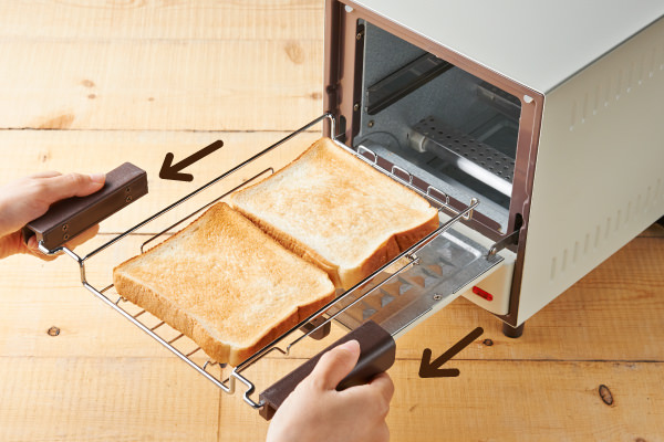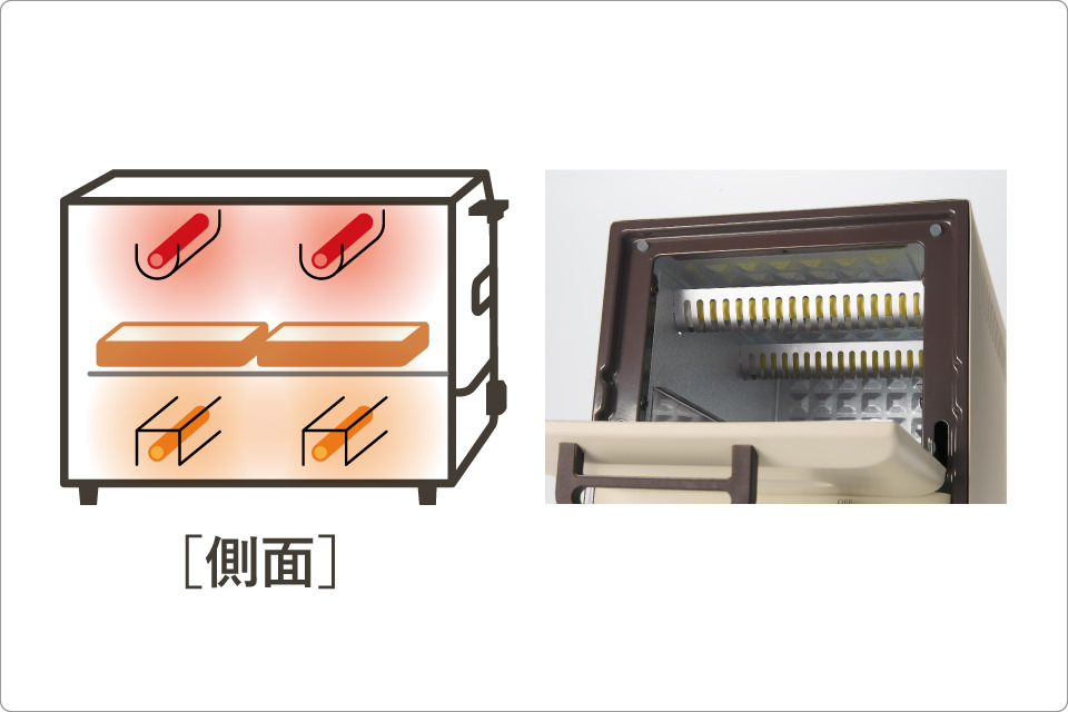 [スライドラックオーブンデリカ]独自の、熱を逃さず素早く加熱する構造で、トーストをはじめいろんな食材をおいしく焼き上げます。