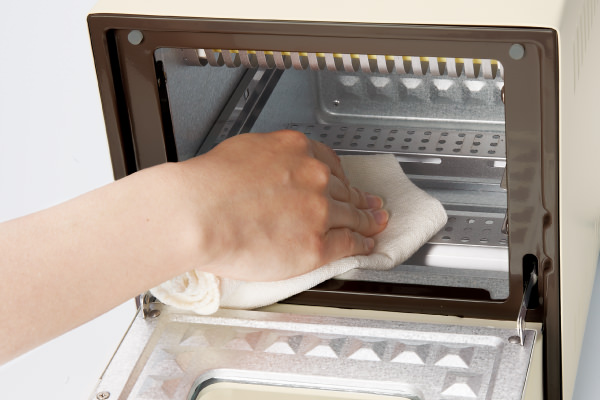 ・受け皿を引き出して、パンくずや汚れを取り除いてください。