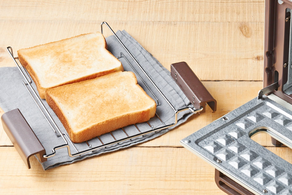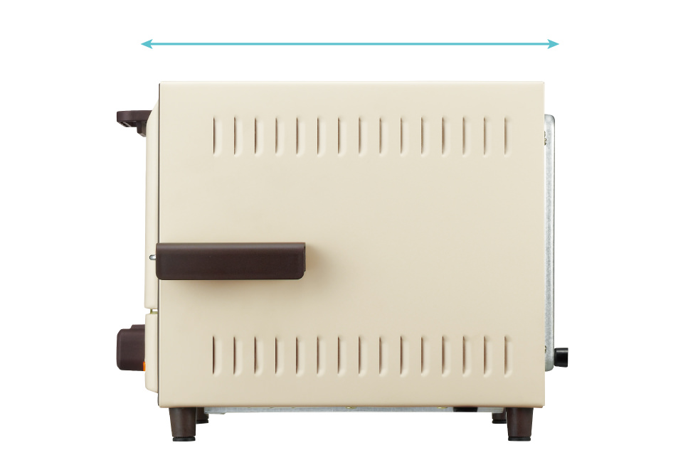 トースト2枚を並べて焼けるのに幅をとらない設計なので、置く場所にも困りません。 テーブルや調理台のちょっとしたスペースに置けるのがうれしい、コンパクトサイズです。
