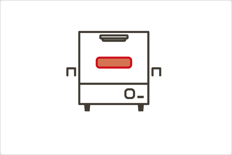 “チーン”と鳴ったらできあがり。[スライドラック]の持ち手を握り、手前に引き出して調理物を取り出します。