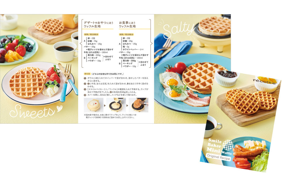 [スマイルベイカーミニ]シリーズにはそれぞれ専用レシピシートが付属。どれもアレンジの参考にしやすいものばかりです。