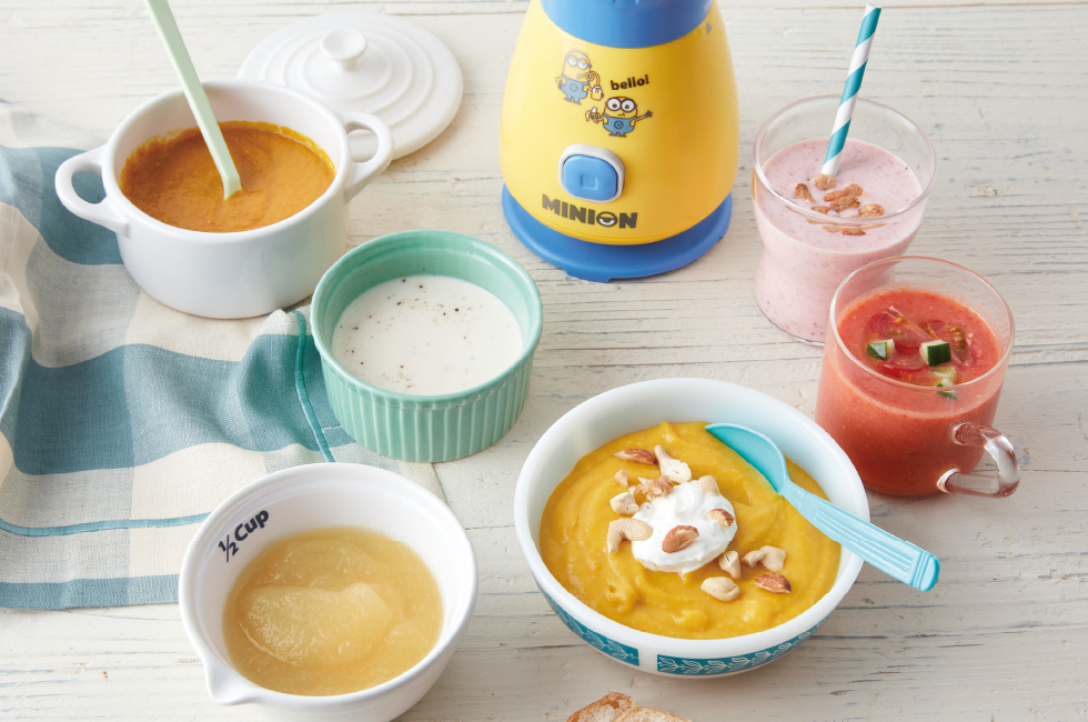 スイッチひとつで操作できる、簡単仕様の[ソロブレンダーソラン / ミニオン]。この1台があれば、家庭で作った氷や冷凍フルーツも撹拌OK。フレッシュスムージーも簡単にできちゃいます。スープやドレッシング、ソースも作れるので、料理のバリエーションがぐっと広がるはず!