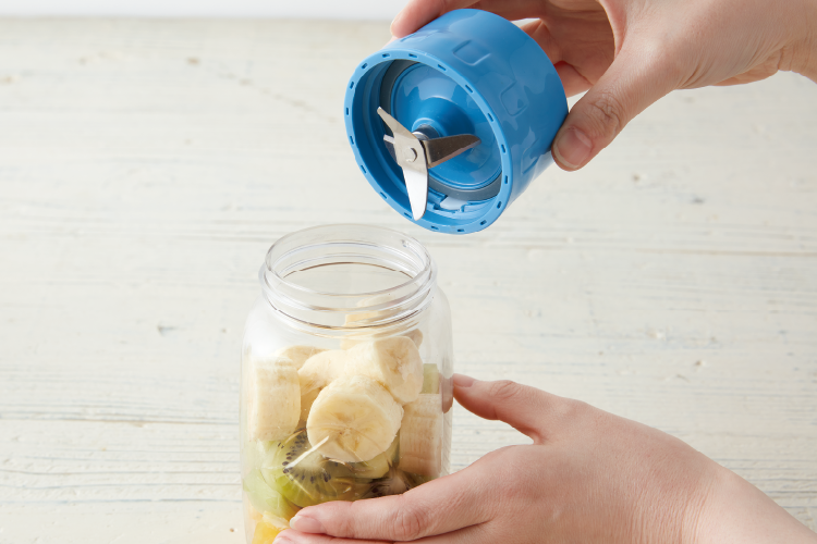 [ボトル]に食材を入れて[カッター]を取り付けます。