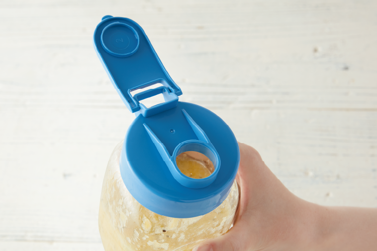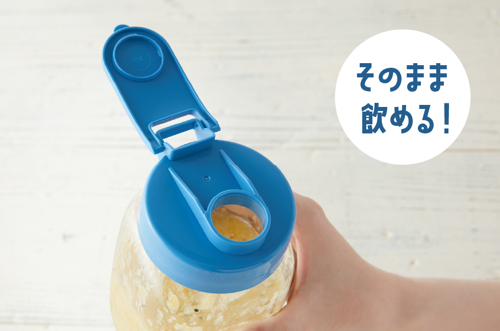 グラスに移し替えずにそのまま飲める、専用の[ドリンクキャップ]つき。ソースやスープを注ぐ時もこの[ドリンクキャップ]が活躍します。