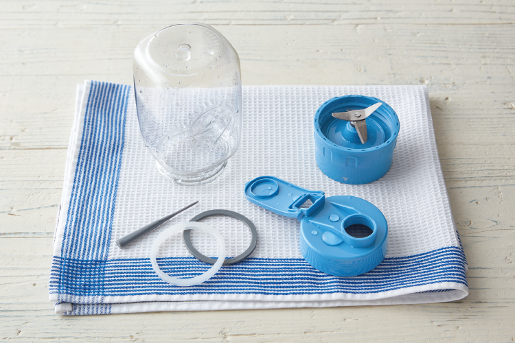 ・[カッター]や[トライタン製ボトル]内部に材料の残りがこびり付いた場合は、水を入れて[本体]にセットし、電源を入れて数回撹拌すると汚れが取れやすくなります。