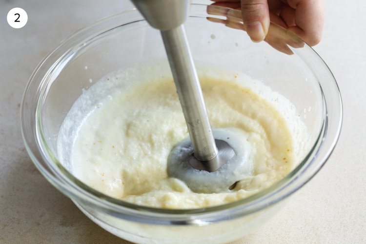 マッシュポテトグラタン じゃがいものでんぷんが、ホワイトソースのようなとろみに変化。 チーズと溶け合うことでさらに味わいリッチなグラタンに。 使用製品 コードレスハンディブレンダー 製品情報はこちら 材料 2〜3人分 じゃがいも…2〜3個(250g) 【A】牛乳…100ml 【A】バター…20g 【A】コンソメスープの素(顆粒)…小さじ1/2 【A】塩、こしょう…各少々 【A】白ワイン(あれば)…大さじ1 ピザ用チーズ…50g 【B】パン粉…大さじ3 【B】パセリ(みじん切り)、オリーブオイル…各大さじ1 作り方 1 じゃがいもは2〜3cmに切り、耐熱ボウルに入れる。水(大さじ1)を加えてふんわりラップをかけ、やわらかくなるまで電子レンジ(600W)で5〜6分加熱する。 2 ①に【A】を加えて【低速】でなめらかになるまで撹拌する〈POINT写真②〉。 3 耐熱容器に②を入れて、ピザ用チーズ、混ぜ合わせた【B】を上からかけて、焼き色がつくまでトースターで5〜6分焼く。 〈 POINT 〉 写真は撹拌の目安です。 作り方②:撹拌後。