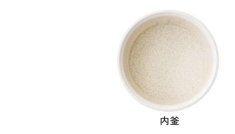 基本のごはん 0.5合の少量からおいしく炊ける 使用製品 クッキングライスクッカー 製品情報はこちら 材料 1合分 米…1合 *水は[内釜]の白米の目盛に合わせて入れてください。 作り方 1 [内釜]に洗った米を入れ、水(分量外)を白米1の目盛まで加える。 2 [内釜]を[本体]にセット。 【Menu】で 白米を選択。【START】を押して調理開始 (できあがりまで約35分)。 3 炊き上がったごはんは、さっくり混ぜる。 〈 POINT 〉 写真は[内釜]に材料を入れた、加熱前の状態です。