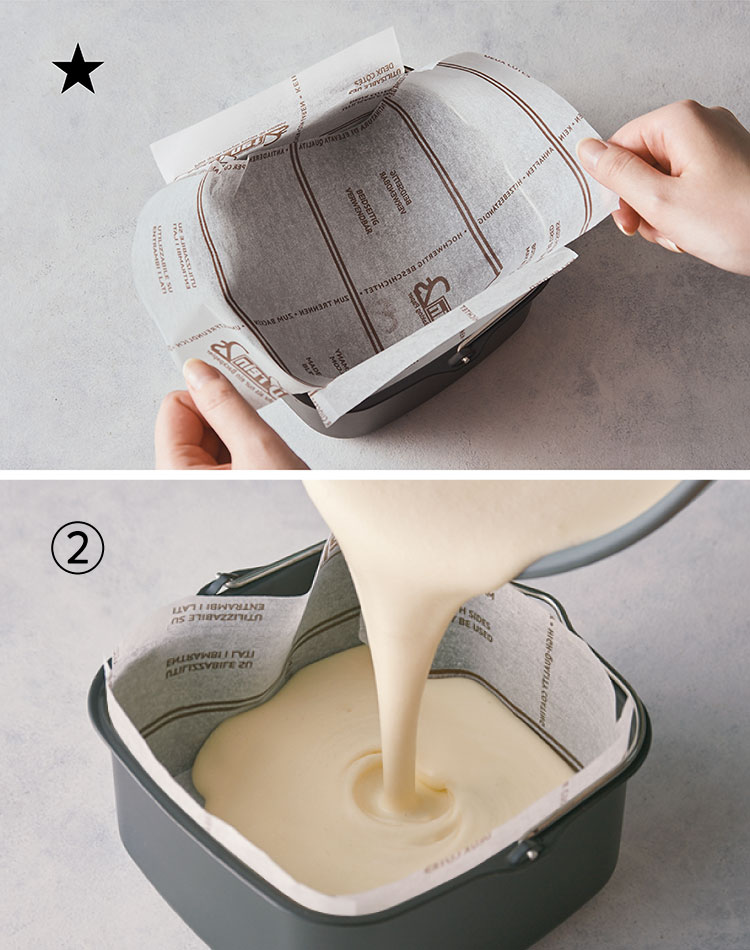 準備 ★:オーブンペーパーは約25×13cmの大きさに2枚切り、[インナーポット]に十字になるように敷くと簡単です。