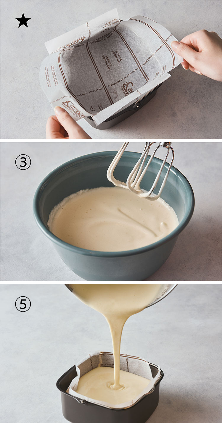準備 ★:オーブンペーパー(13cm幅)を2枚用意し、[インナーポット]に十字になるように敷くと簡単です。