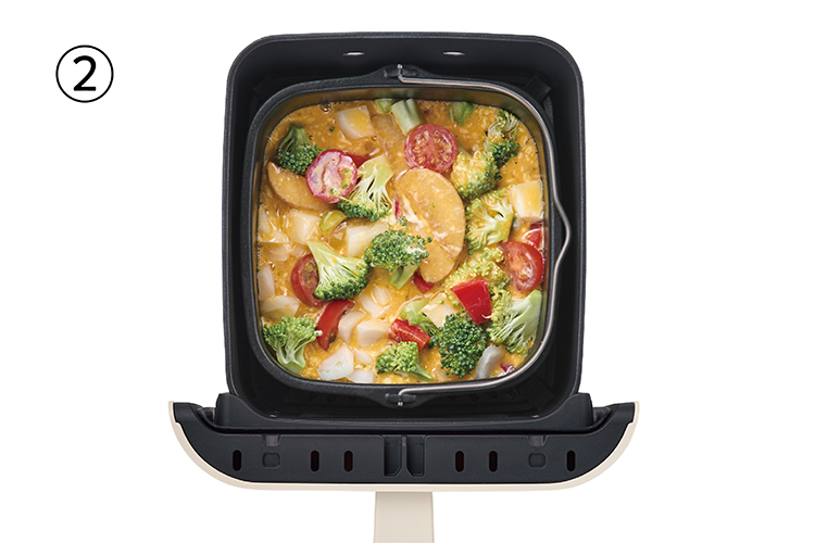 作り方②:[バスケット]に入れた、加熱前の状態です。