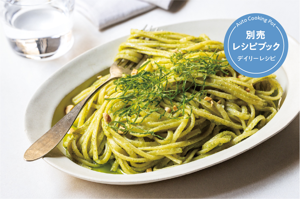 大葉のジェノベーゼソース 本格的なジェノベーゼを、爽やかな風味の大葉とピーナッツでアレンジ。 (保存の目安:冷蔵庫冷蔵庫で約2週間) 使用製品 自動調理ポット 製品情報はこちら 材料 約4人分 オリーブオイル…250ml 大葉…20枚 バターピーナッツ…20g 粉チーズ…20g 塩…小さじ1と1/3(8g) トッピング 大葉(細切り)、バターピーナッツ(砕く) 作り方 1 《トッピング》以外の材料を表記の上から順に入れる。 2 【SELECT】ボタンを押し、【JUICE&CLEAN】を選ぶ。 *器にゆでたパスタ(分量外)を盛り、できあがったソースをあえる。《トッピング》はお好みで。 〈 ARRANGE 〉 魚介のカルパッチョのソースとして使っても。