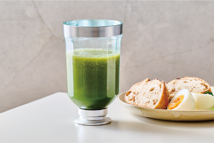 基本のグリーンスムージー さわやかで飲みやすく、朝食におすすめ。 使用製品 コードレス ソロブレンダ- 製品情報はこちら にんじん(1cm角に切る)…1/4本(30g) りんご(2〜3cm角に切る)…1/4個(60g) 小松菜(2cm幅に切る)…1/2株(25g) 水…150ml 作り方 1 [ボトル]に材料を上から順に入れ、撹拌する。