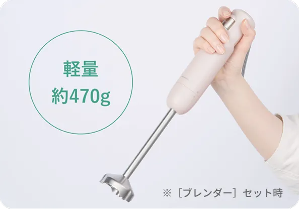 スリムで材料が飛び散りにくい[カップ]付き。食器洗い乾燥機も使用できます。