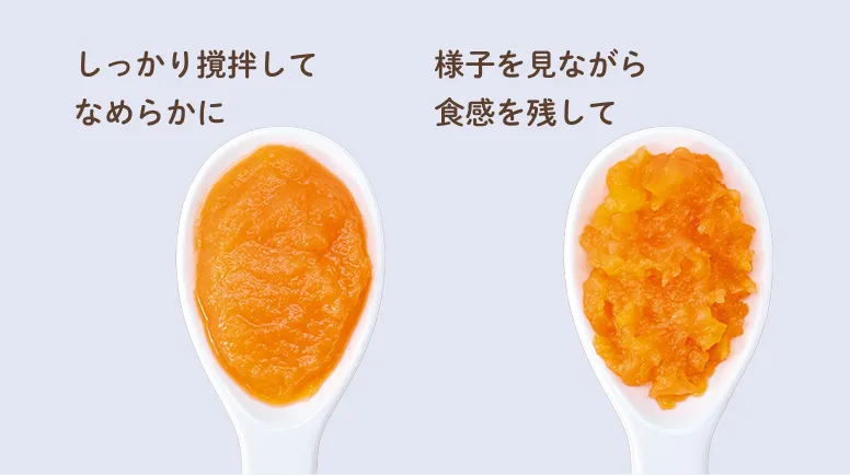 離乳食初期のペースト状から、食感を残した状態まで、赤ちゃんの成長ペースに合わせて調整できます。