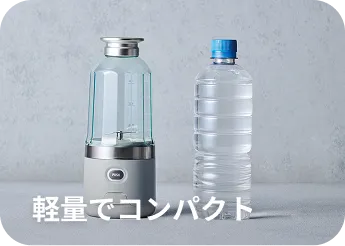約420gと軽量。場所を選ばない、自由なコードレス。コンセント不要なので、好きな場所で作りたてを。