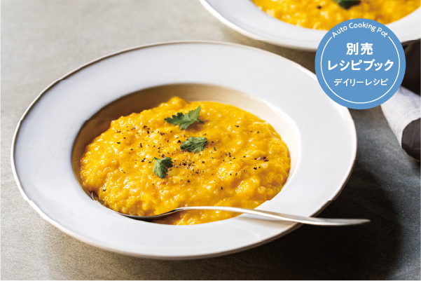 “ほったらかし”でお料理完成!スリムなポット型の自動調理器。 材料の刻み具合や加熱温度を、5種類の調理モードごとにコントロールしながら撹拌。